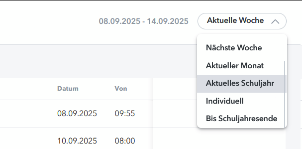 In der oberen rechten Ecke kann das Datum ausgewählt werden, für welches die Klassenarbeiten angezeigt werden sollen.