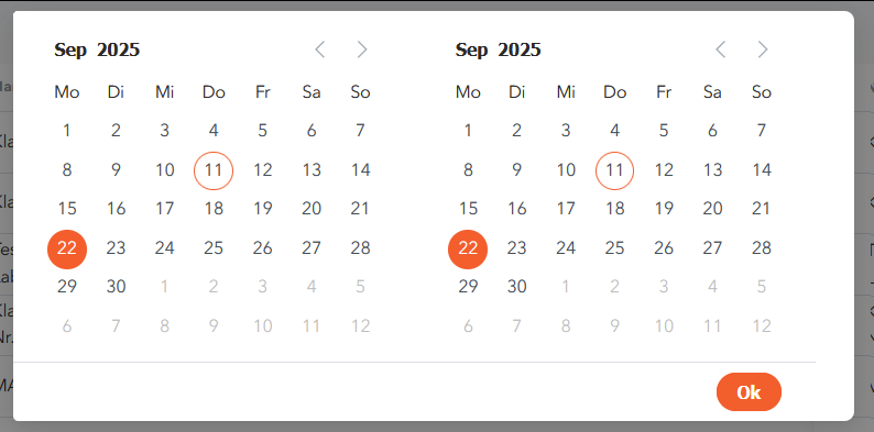 Über "Individuell" kannst du einen bestimmten Tag/Zeitraum auswählen. Wähle links das Anfangsdatum und rechts das Enddatum.