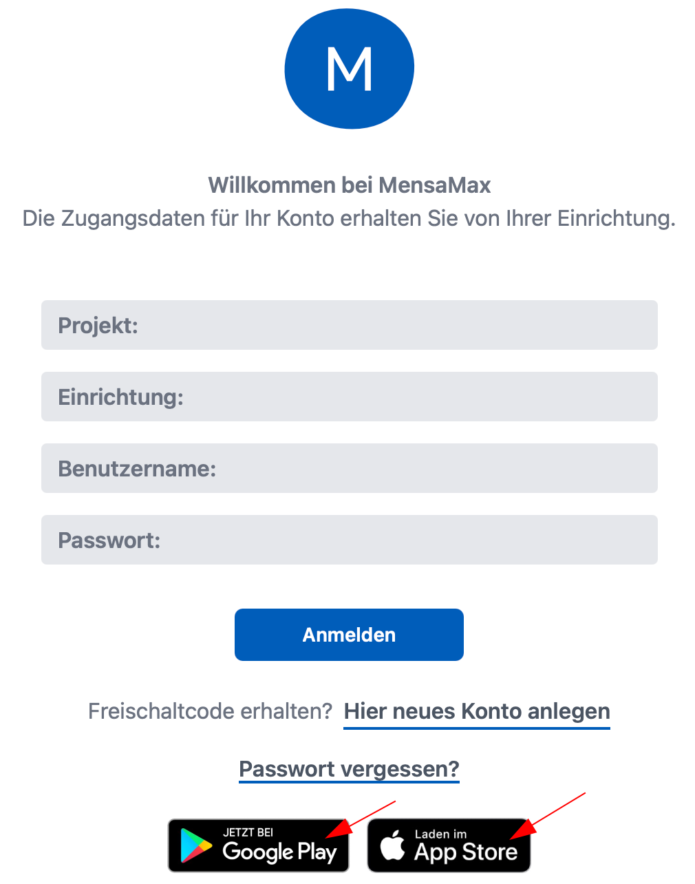 Bitte laden Sie die App unter https://login.mensaweb.de runter: