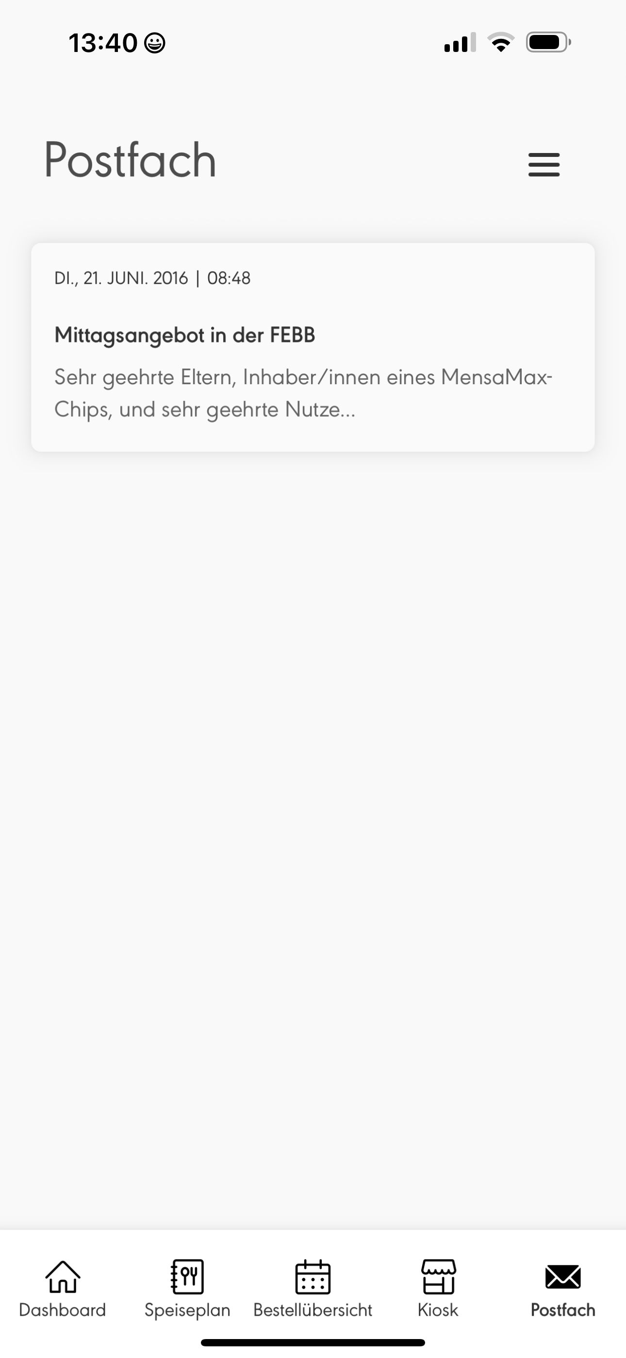 - Postfach - neue Nachrichten seitens MensaMaxbyParentPay oder der FEBB