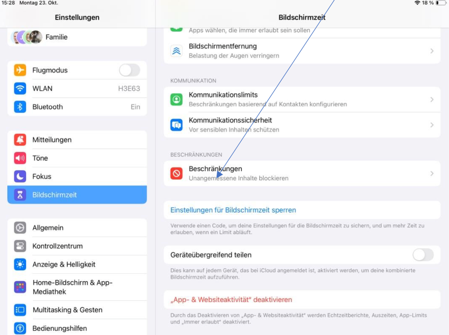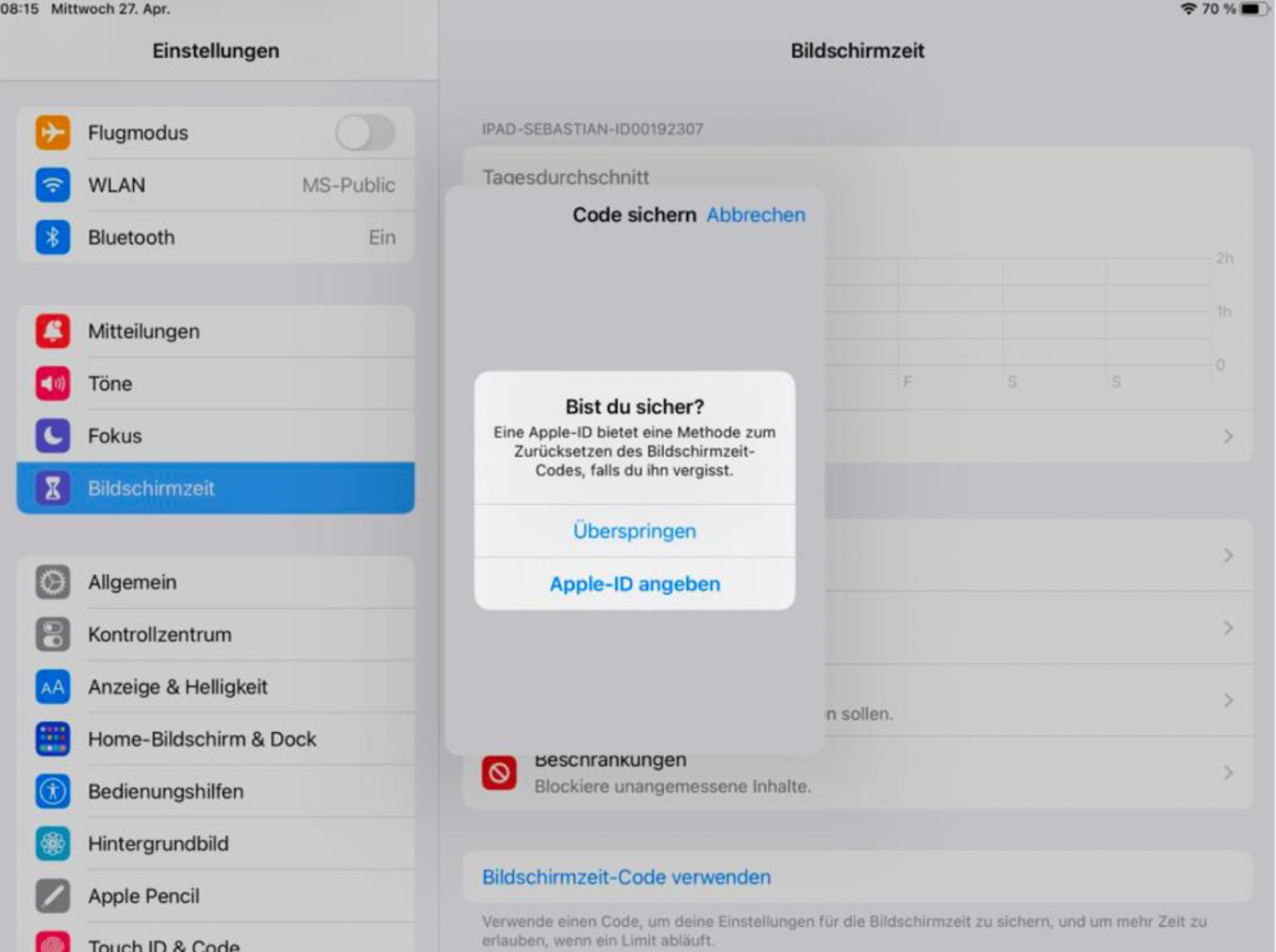 Einrichten der Bildschirmzeit am iPad - Kurzanleitung